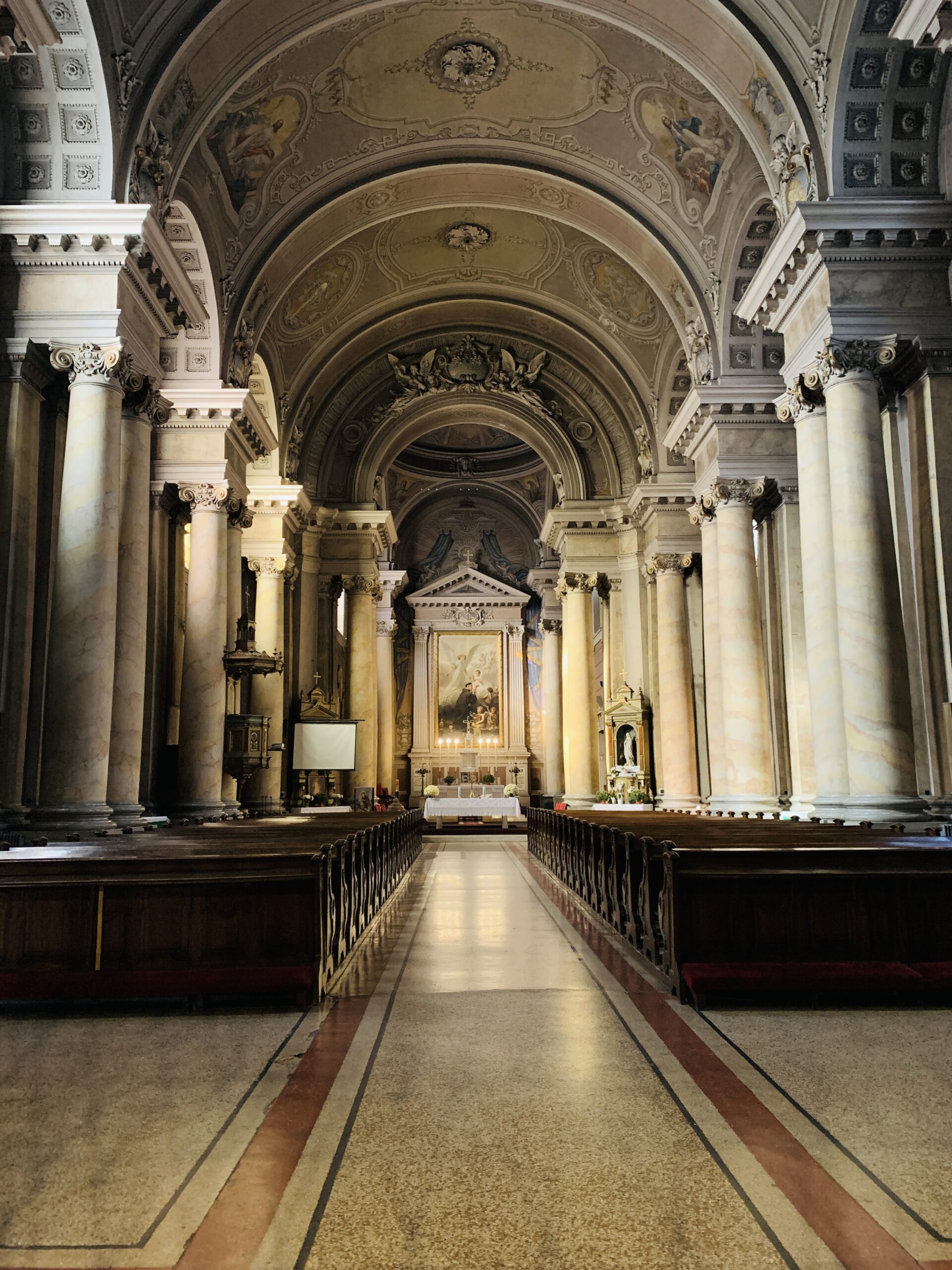 Kościół prezentuje eklektyczny styl architektoniczny, łączący elementy neoklasycyzmu, baroku i renesansu. Główne wejście zdobią cztery imponujące kolumny ozdobione korynckimi kapitelami. Nad wejściem eksponowana jest replika Piety Michała Anioła.