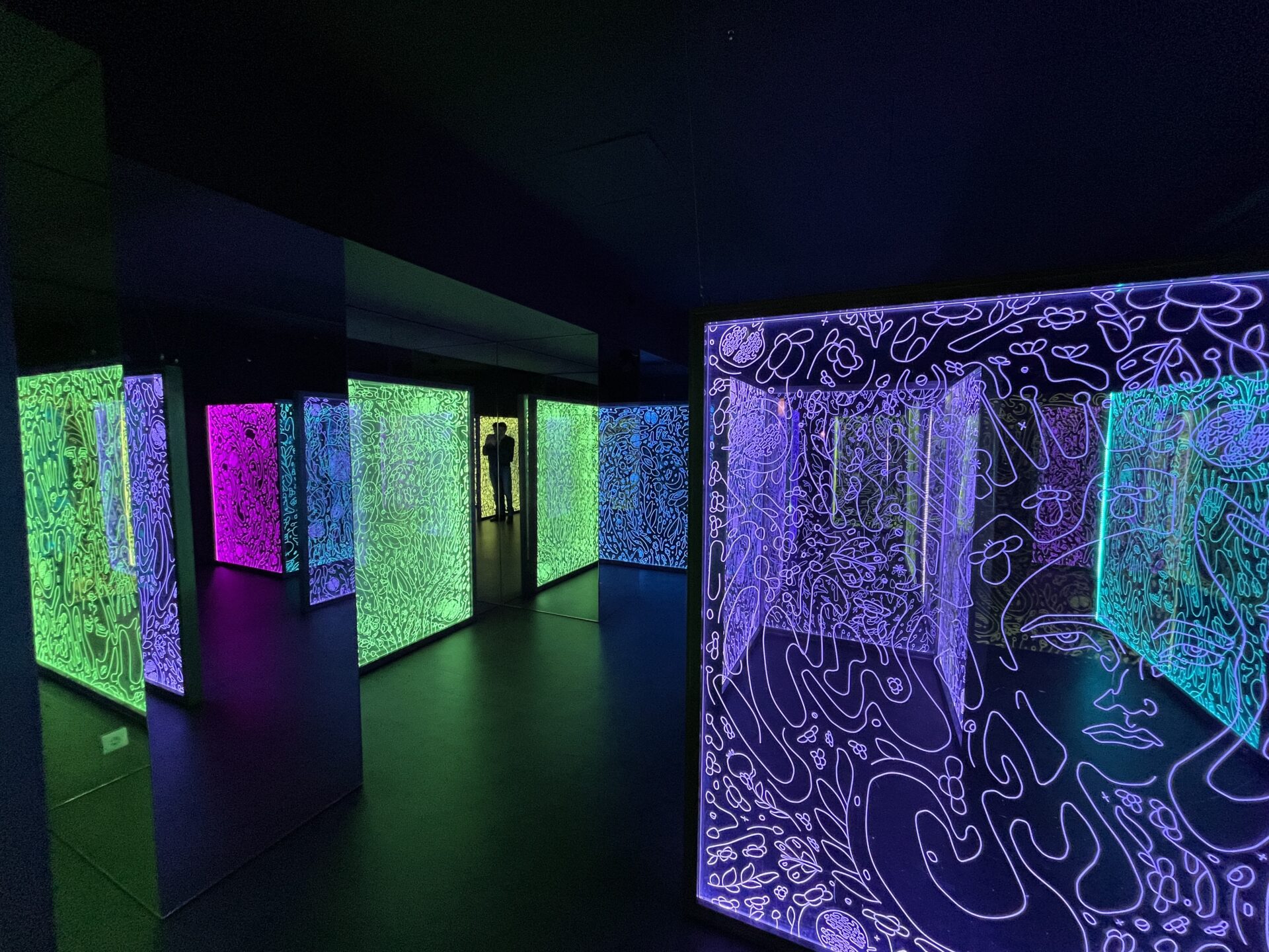 Sal jest 12, chociaż w pamięci trudno jest mi się ich doliczyć. Mamy basen z gumowymi kulkami (całkiem fajne doświadczenie i powrót do dzieciństwa), przejście przez świecące wstążki, salę z latarniami gdzie faktycznie możecie zrobić ładne zdjęcie, wyrzutnie piór, salę z ATARI (3 maszyny do grania to chyba jakiś żart, ale można było sobie pograć w stare, dobre MARIO). Ponad to jest też sala z podświetlonymi lustrami i wspomniana wcześniej wystawa “Love Within”, która składa się ze zmieniających kolory pudeł.