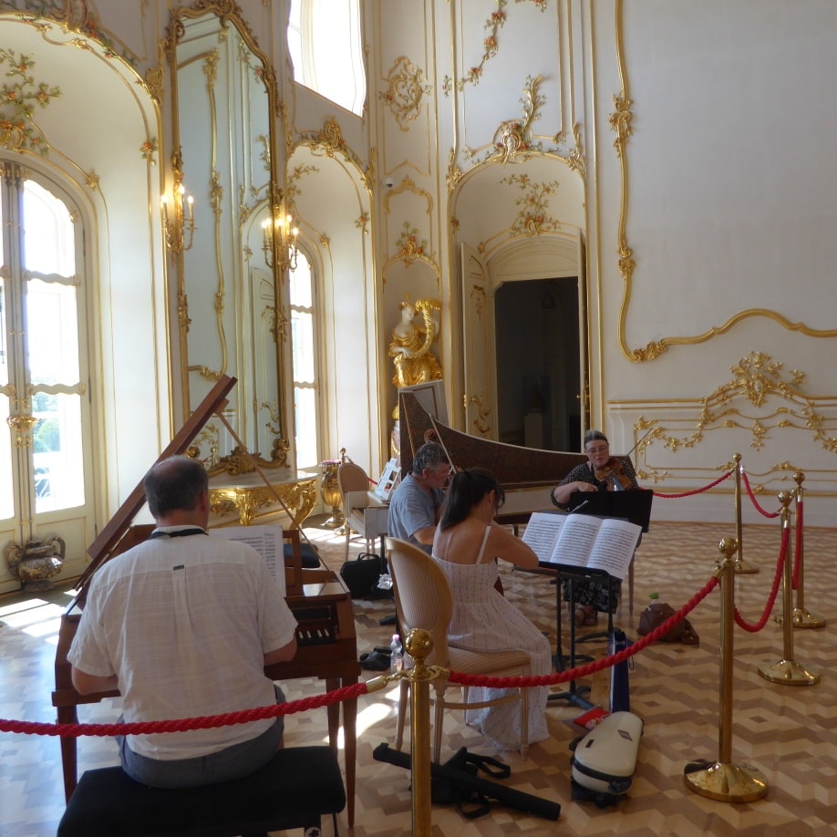 Byliśmy zachwyceni wnętrzem pałacu, chociaż upał nie pozwolił nam na spacer po parku. Przed wejściem do pałacu stoją meleksy, które za dodatkową opłatą obwiozą Was po całym parku.