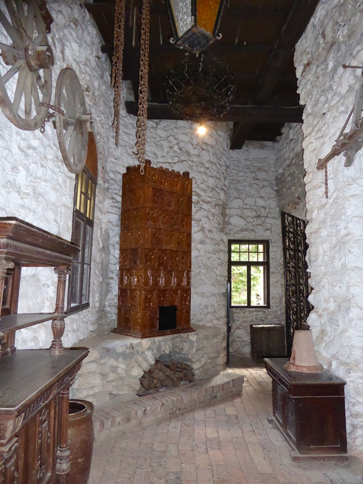 Na wzór średniowiecznych zamków w kompleksie można znaleźć studnię, salę rycerską czy piwnice z winami.