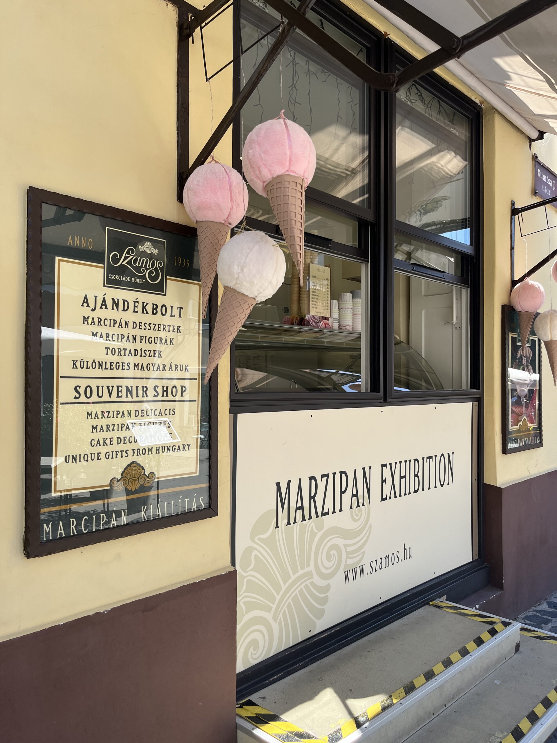 Szentendre słynie ze słodyczy – to właśnie stąd pochodzi znana w całych Węgrzech marka Szamos. Warto odwiedzić Muzeum Marcepanu, gdzie oprócz pysznych słodkości zobaczysz niezwykłe rzeźby wykonane z marcepanu – od miniatur budapeszteńskiego parlamentu po postacie z bajek, niektóre z prac wymagały nawet kilkuset godzin pracy i kilkudziesieciu kilogramów marcepanu. To gratka nie tylko dla dzieci! W budynku obok znajduje się także Cukiernia Szamos, gdzie mozna skosztować pysznych ciast, kawy i innych węgierskich deserów.