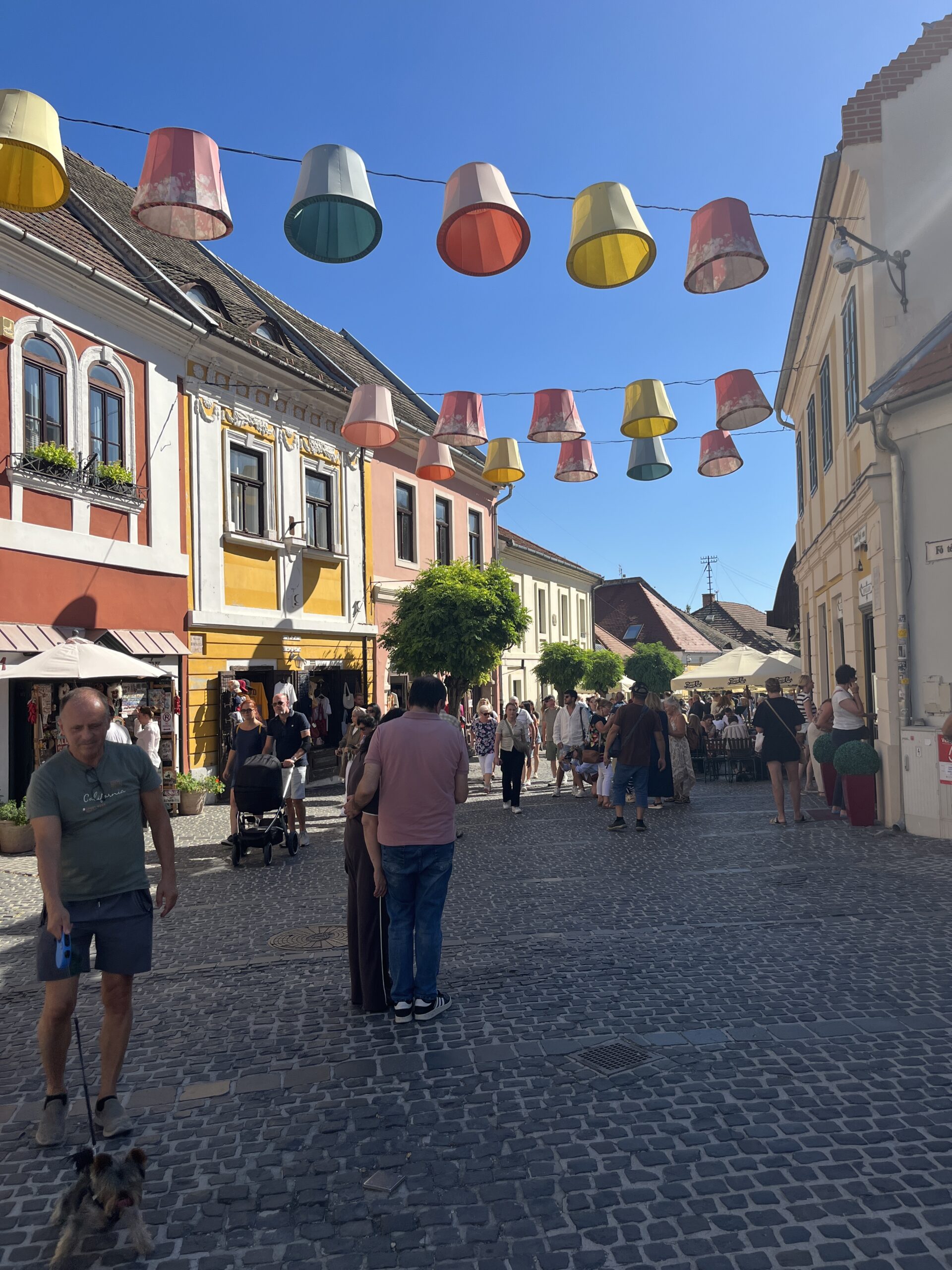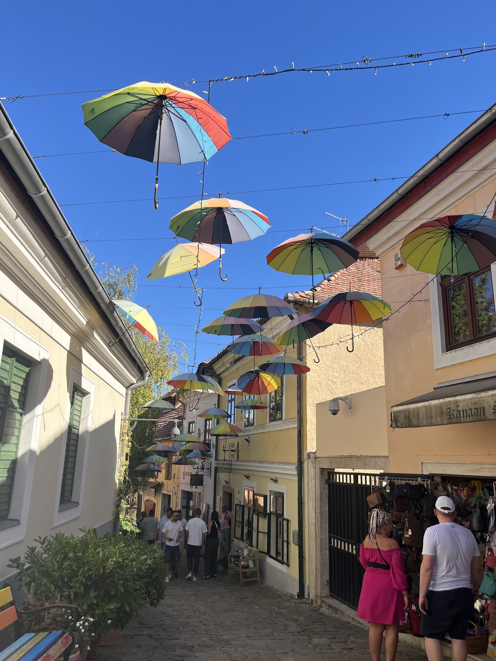 Spacer po Szentendre najlepiej rozpocząć od Fo tér, czyli głównego placu, z którego odchodzą wąskie brukowane uliczki. W sezonie letnim unosi się tam magiczny klimat – nad jedną z ulic rozwieszone są setki kolorowych parasolek, które tworzą bajkowy baldachim. To miejsce idealne na zdjęcia, które zachwycą na Instagramie.